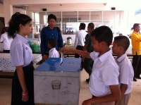 ตามที่ นายวิโรจน์ ตันติวิริยาภรณ์ ผู้อำนวยการโรงเรียน อบจ.เมืองภูเก็ต ได้กำหนดให้มีการเลือกตั้งคณะกรรมการนักเรียน เพื่อเป็นการฝึกฝนแนวทางประชาธิปไตย ให้กับนักเรียน ในวันที่ 8 กรกฎาคม 2557 เวลา 08.30-12.00 น. โดยนักเรียนที่มีสิทธิลงคะแนนเลือกตั้ง คือนักเรียนระดับชั้น ป.4 - ม.6 ณ อาคารโรงอาหาร โรงเรียน อบจ.เมืองภูเก็ต ไปแล้วนั้น บัดนี้การเลือกตั้งได้เสร็จสิ้น จึงประกาศผลมาให้ทราบโดยทั่วกัน ผลการเลือกตั้ง ปรากฏว่า พรรค PPAO.ร่วมใจพัฒนา ผู้สมัครหมายเลข 3 ได้รับคะแนนสูงสุด หัวหน้าพรรค ชื่อ นายสราวุธ สองเมือง |